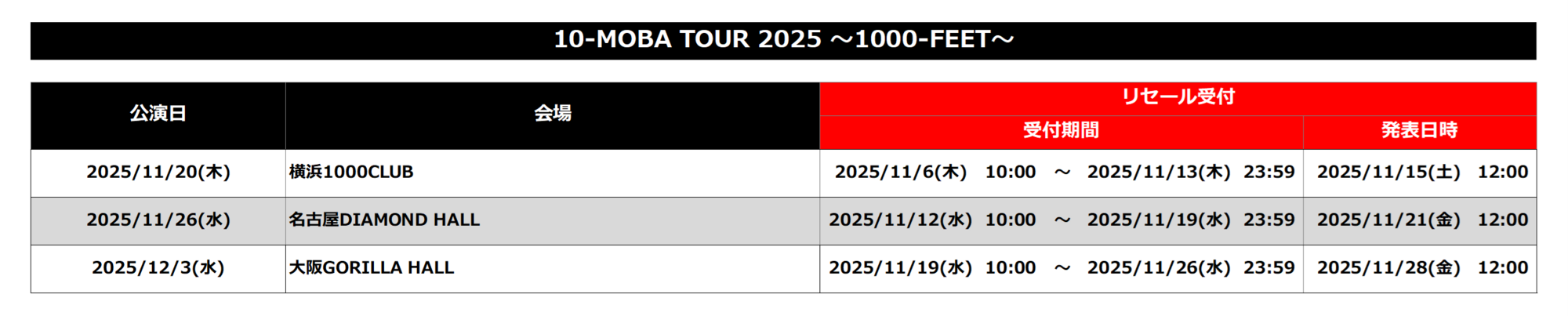 「10-MOBA TOUR 2025 〜1000-FEET〜」チケットリセールに関して