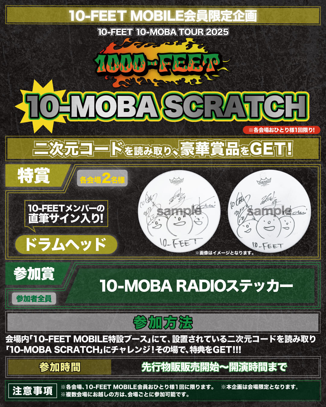 各会場内「10-FEET MOBILE特設ブース」にて10-MOBA SCRATCHと10-MOBA目安箱を実施決定!