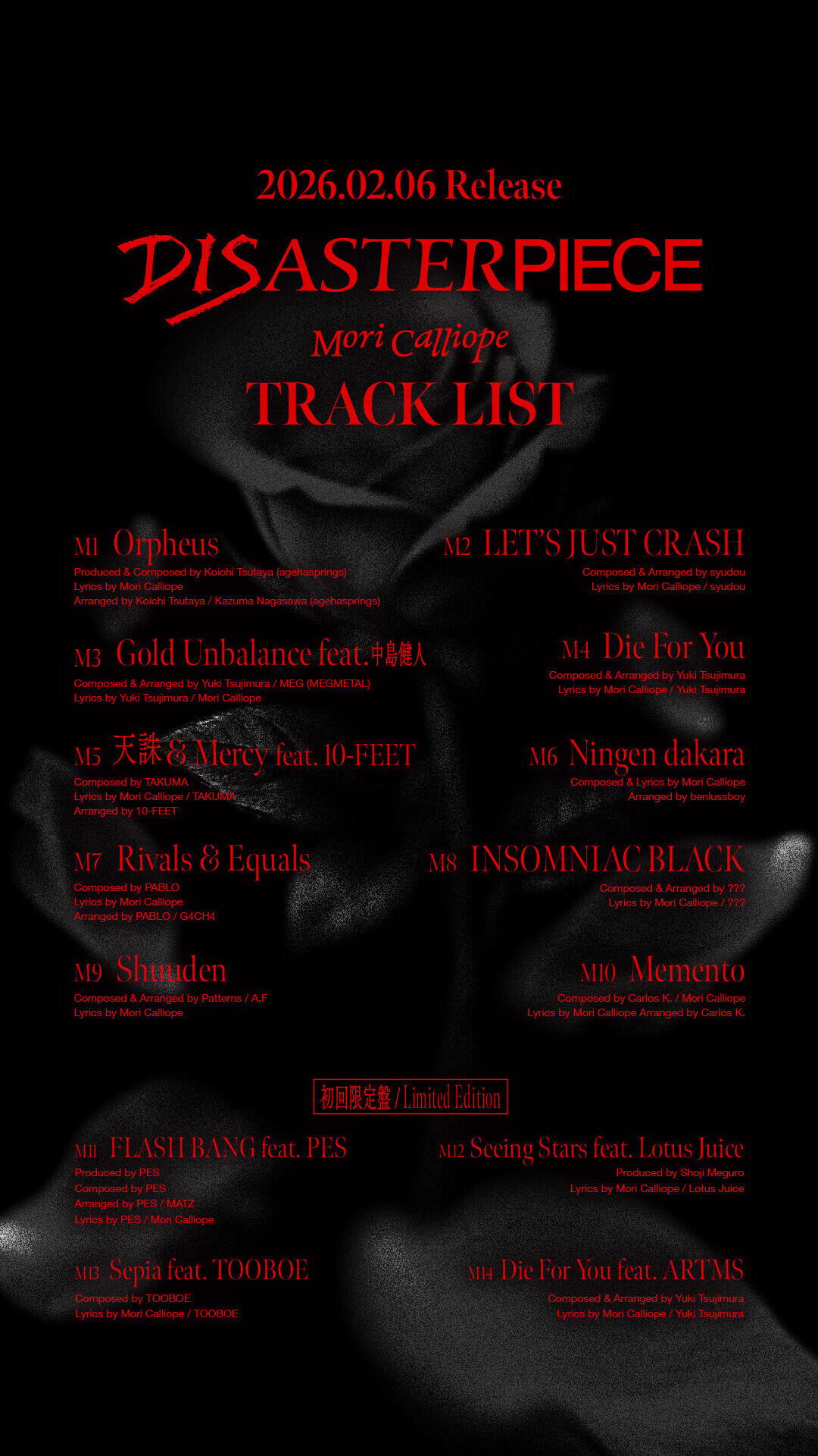 Mori Calliopeメジャー3rdアルバム 『DISASTERPIECE』収録楽曲「天誅 & Mercy feat. 10-FEET」にコラボレーション参加決定!