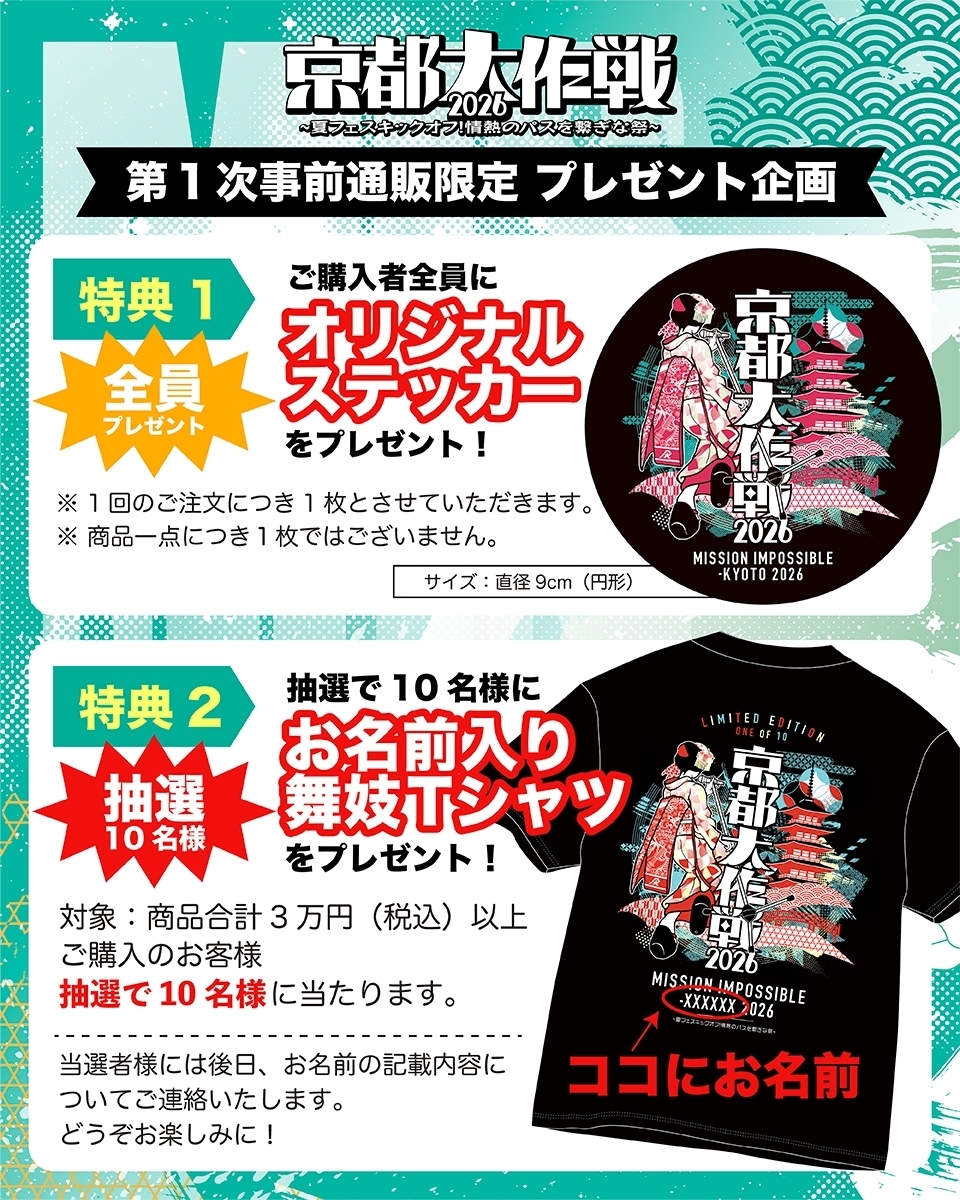 「京都大作戦2026〜夏フェスキックオフ!情熱のパスを繋ぎな祭〜」オフィシャルグッズ第1次事前通販受付決定&受付開始!