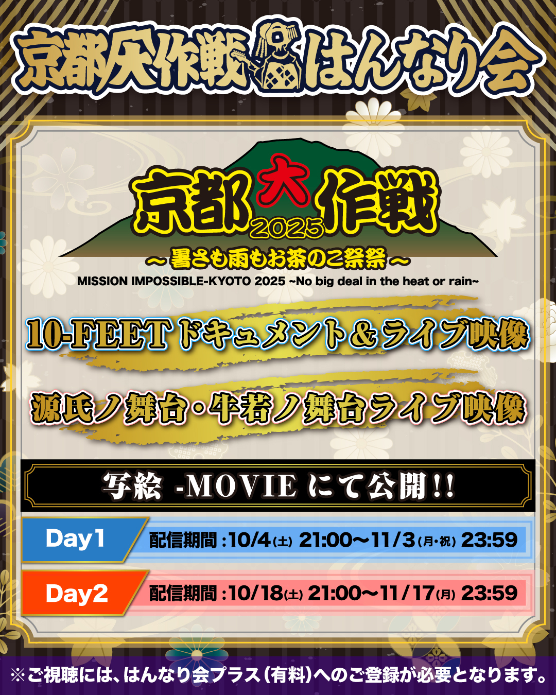 はんなり会プラス(年額/月額会員)限定「京都大作戦2025」10-FEETドキュメント&源氏ノ舞台・牛若ノ舞台のライブ映像配信!